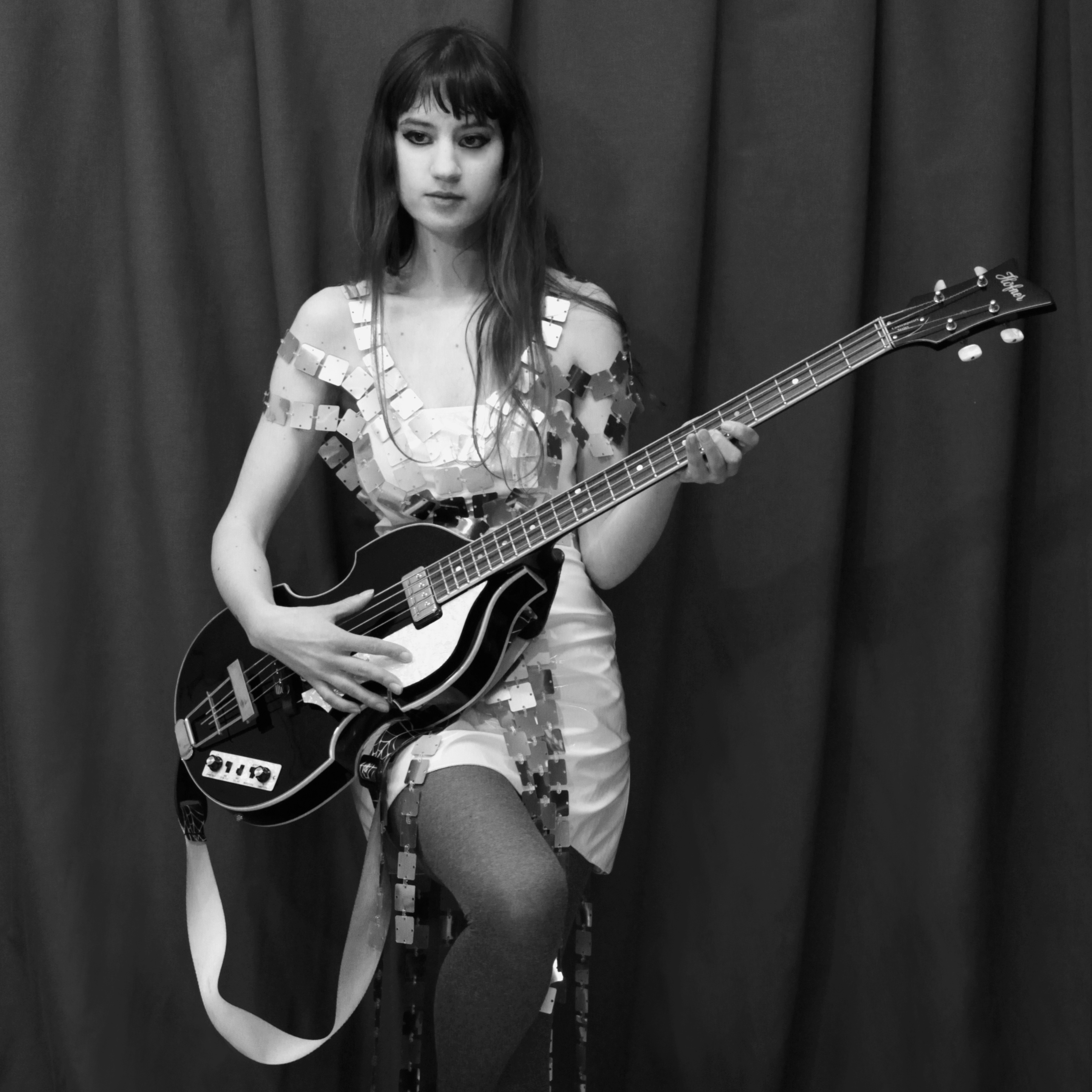 “Ispirazioni musicali rock ’80 per l’abito “Fashion Glam”. Il vestito bianco iridescente è illuminato da una composizione di quadrati argentati che coprono e scoprono le spalle e giocano…