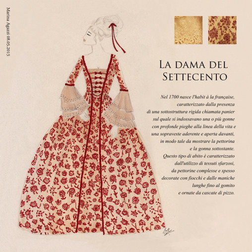 Nel 1700 nasce l’habit à la française, caratterizzato dalla presenza di una sottostruttura rigida chiamata panier sul quale si indossavano una o più gonne con profonde pieghe…