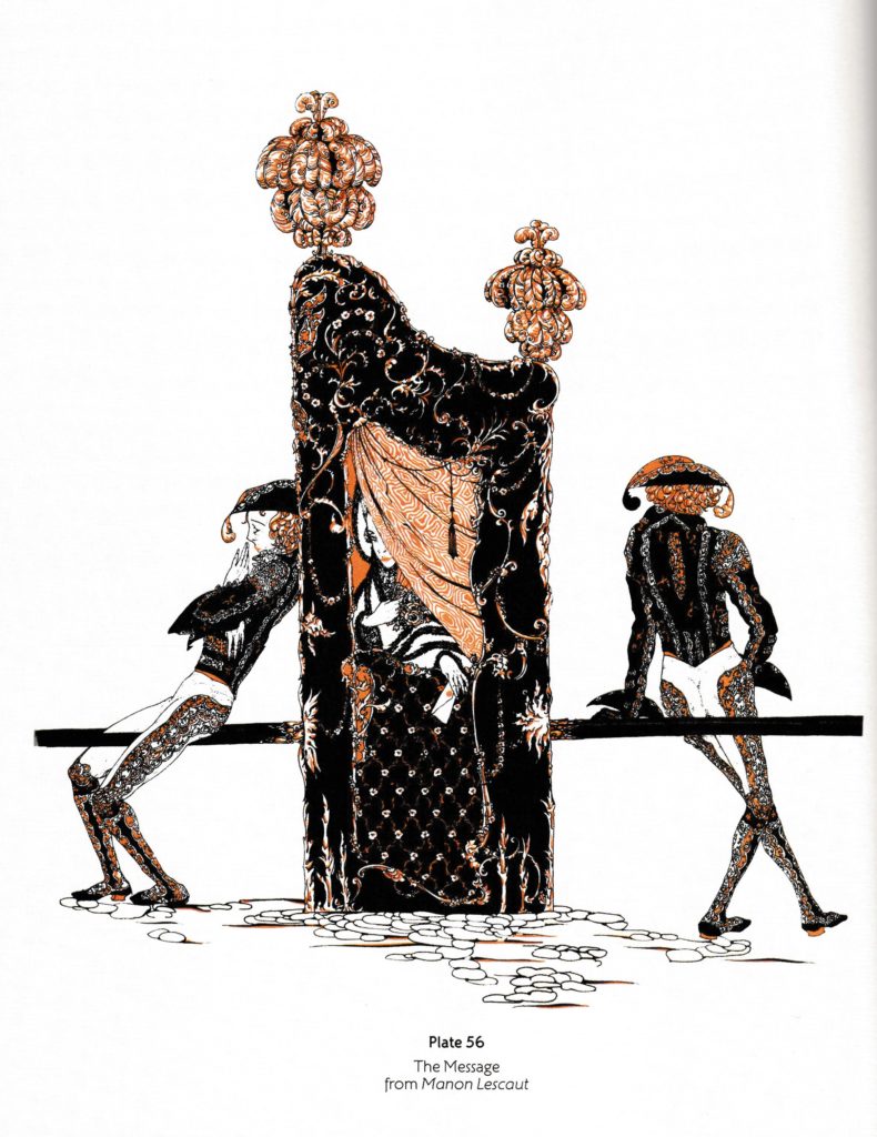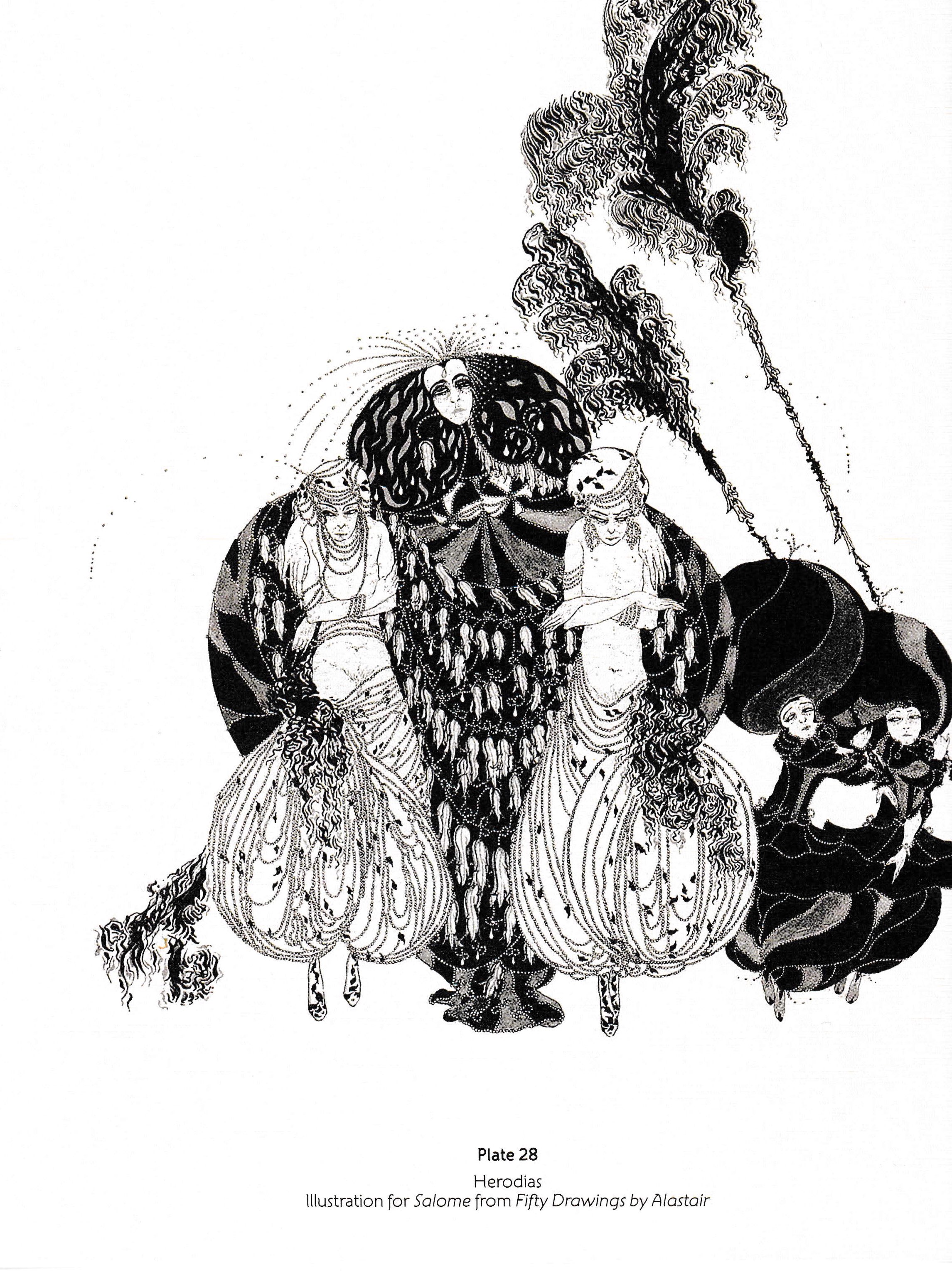 Così per tutti gli anni ’20 Alastair continuò le follie di Beardsley e lo fece con maggior perversità. Le sue illustrazioni sono disegnate e dipinte a china, in bianco e nero o con l’aggiunta di un solo colore, e si ricollegano strettamente alla letteratura decadente dalla quale l’artista trasse la sua ispirazione estetizzante e sottilmente erotica.